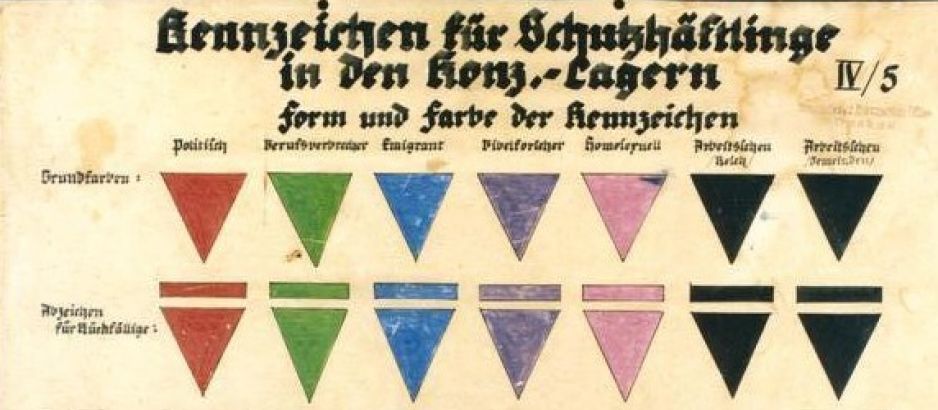 Foto: Kennzeichen der Häftlinge in Konzentrationslagern. © Bundesarchiv, Bild 146-1993-051-07 / Autor/-in unbekannt / CC-BY-SA 3.0, CC BY-SA 3.0 de, commons.wikimedia.org/w/index.php?curid=5483566